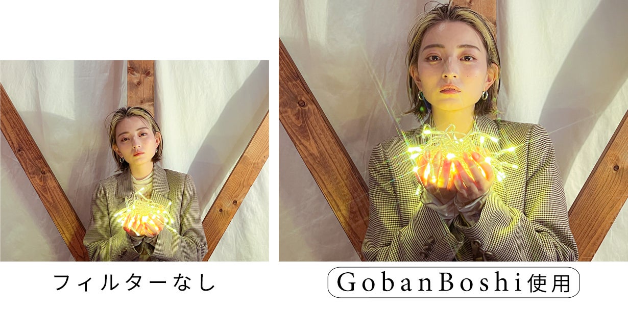 Beamyには平行のライン、GobanBoshiには碁盤の目状のラインが、フィルターガラスに施されており、そのラインに沿って光の部分が伸びることで、フレア(=閃光)が映し出され、「エモい」タッチの写真/動画が撮影可能に。
