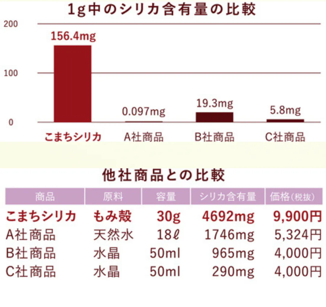 しかも、1gあたりのシリカ含有量がの156.4mgとトップクラスの含有量。(当社比)
