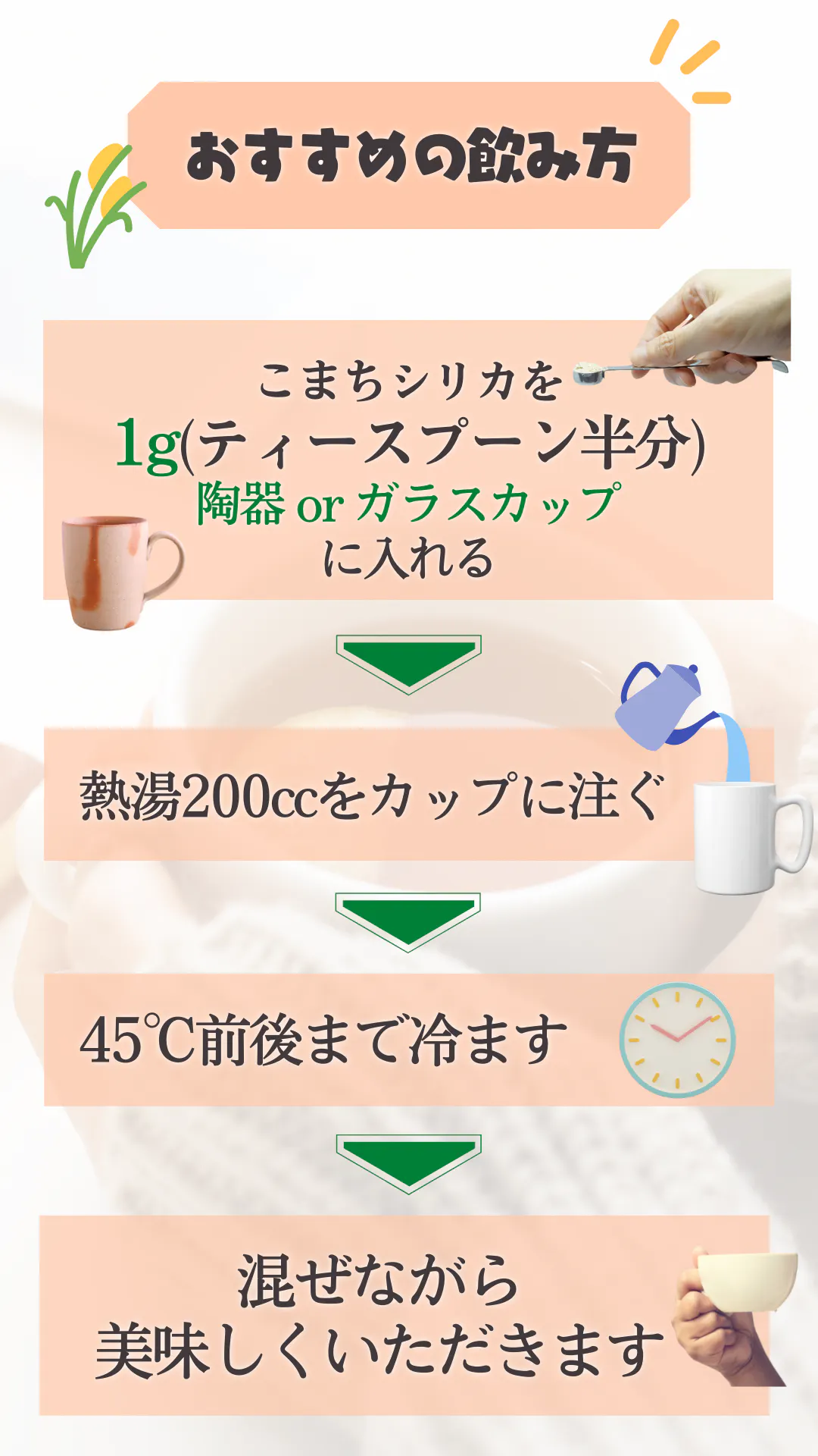 ・1日1gを目安に日に1~2回、熱湯に溶いて45℃前後でお召し上がりください。