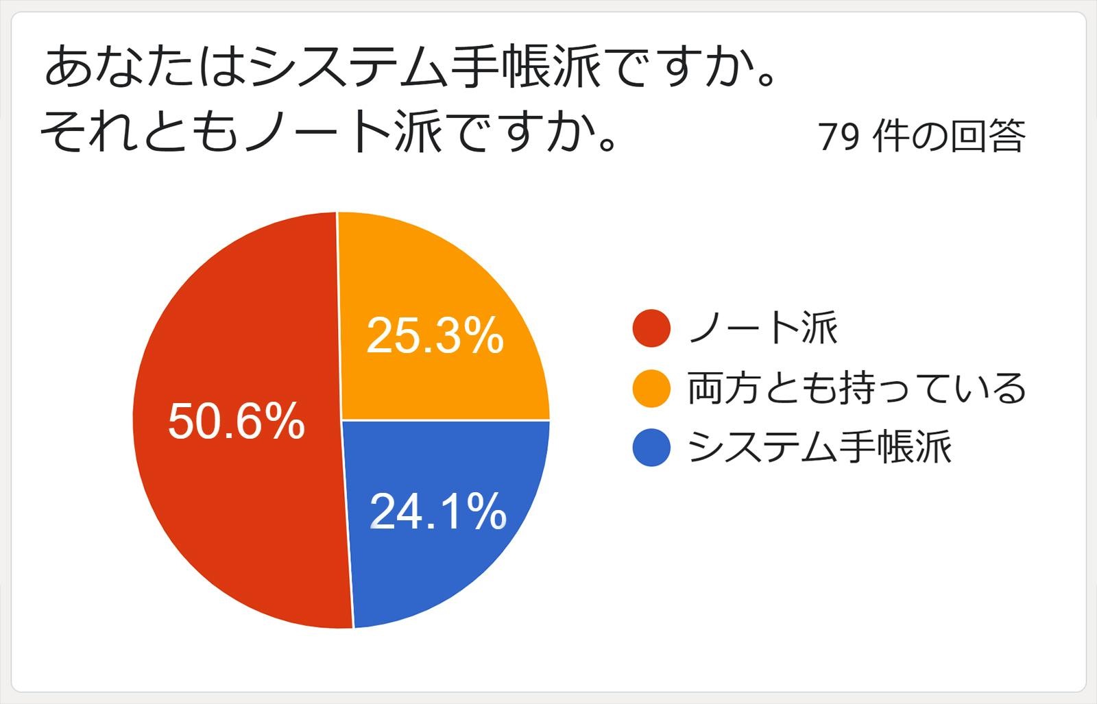 YOSHINAは昨年ノートとシステム手帳の使用状況」についてアンケートを実施しました。その結果、「システム手帳派」、「両方とも持っている」を合わせると半数がシステム手帳を利用していることがわかりました。