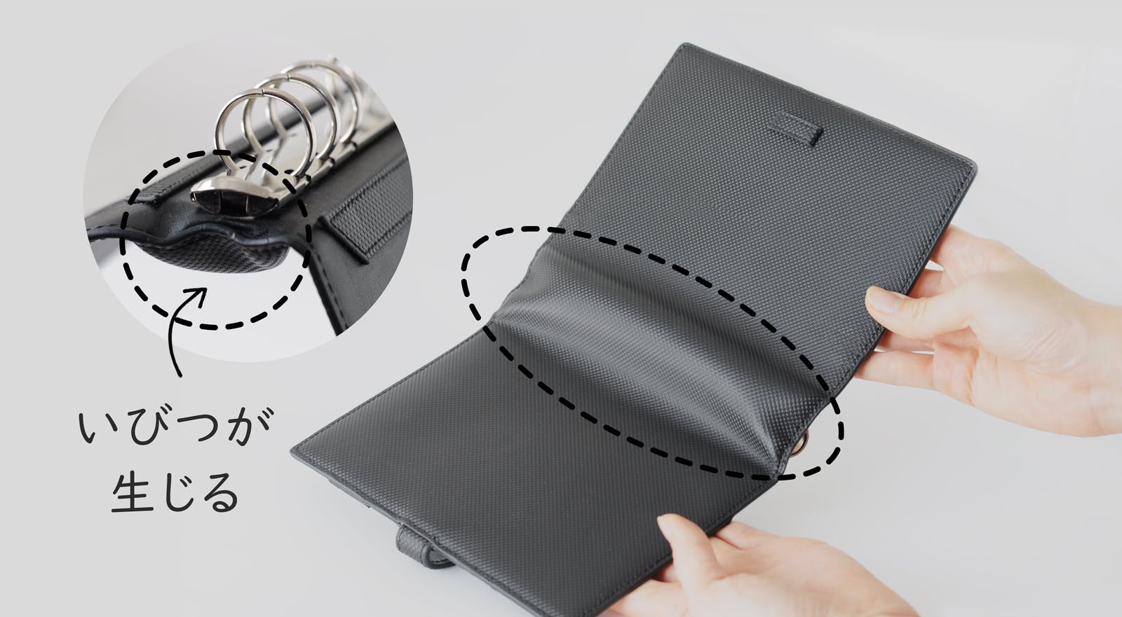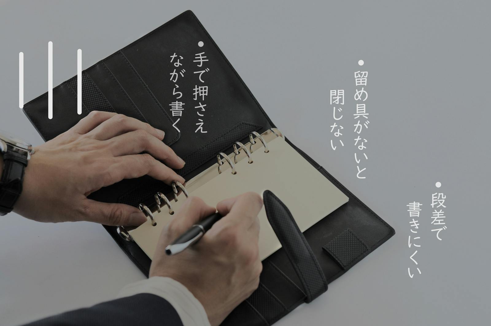 また、複雑な構造によりシステム手帳は180°以上開かず、デスクのない現場で使いにくいと感じたことがありませんか。