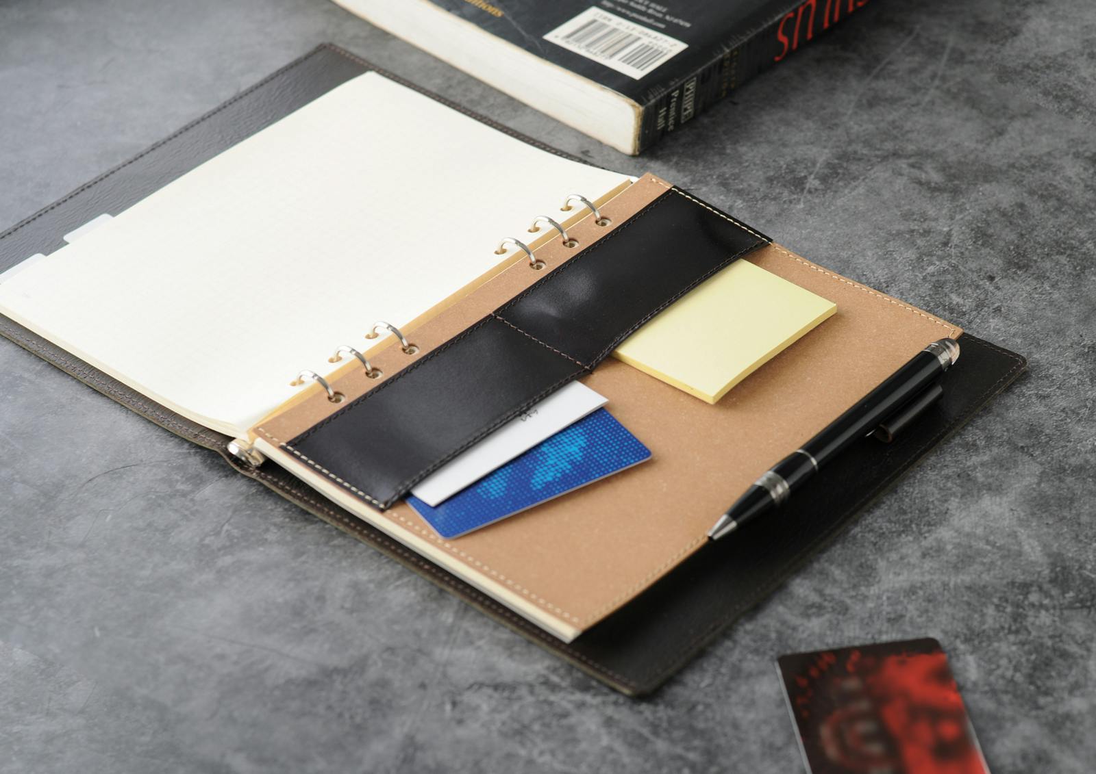 製品本体の幅を少し広いデザインにすることで、リフィルに後付けインデックスを追加しても手帳からはみ出さず、しっかり収まります。