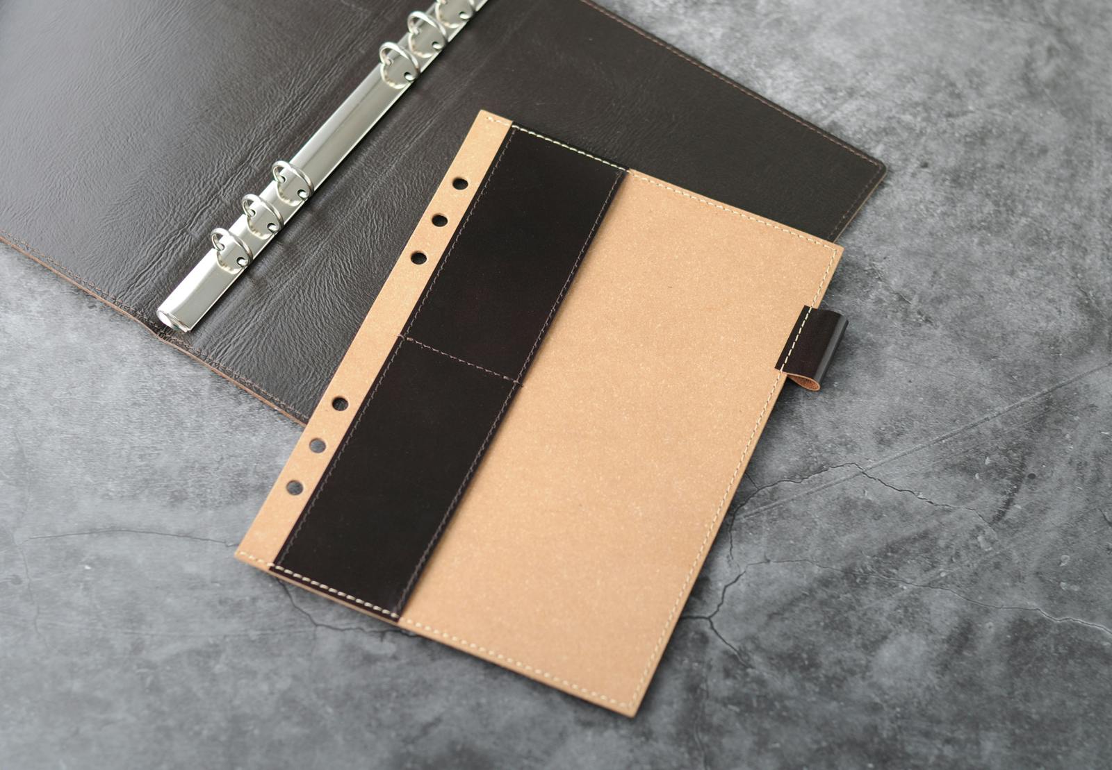 A4サイズの紙を二つ折りにして穴あけして収納することも可能です。たっぷり書き込みたい方におすすめのサイズです。