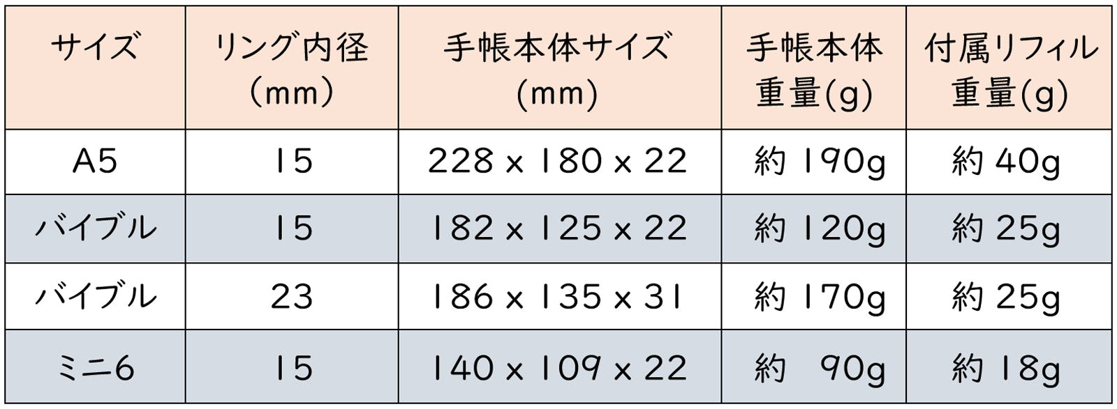 一番使われるバイブルサイズだからこそ、市販リフィルの種類も一番多いです。