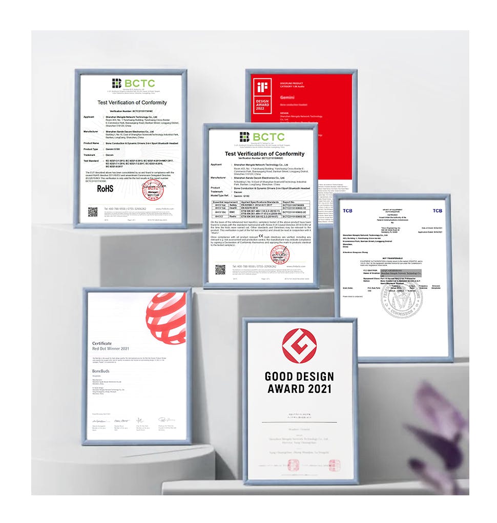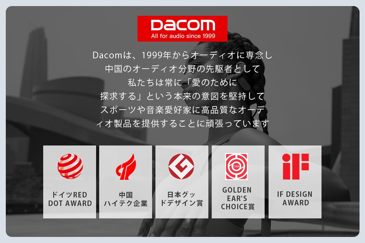 Dacomはプロオーディオの研究開発で20年以上、絶え間なく業界を牽引してきました。私たちの理念と製品は世界50余りの国に伝わり、手掛けたイヤホンは開放型、ヘッドセット式、カナル式、骨伝導など多岐にわたります。耳を塞がないスポーツ用シリーズで、空気伝導を採用したAirWingsは、日本で多くの支持者がいます。骨伝導では、骨伝導完全ワイヤレスイヤホンBoneBudsが2021年ドイツのRed Dot Awardを受賞しました。さらに、第1世代のGeminiイヤホンは、2021年の日本グッドデザイン賞と2022年のドイツ IF DESIGN AWARDを受賞しています。さらにEUCE、RoHs、US FCC、日本技適認証などの多くの国際安全認証に合格しました。