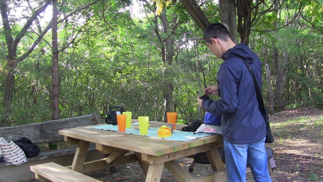 アウトドアでの肉・野菜等の食材切。