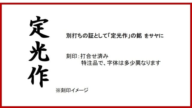 別打ちの証として「定光作」の銘を細身はサヤ部に幅広は刃部に刻印します。