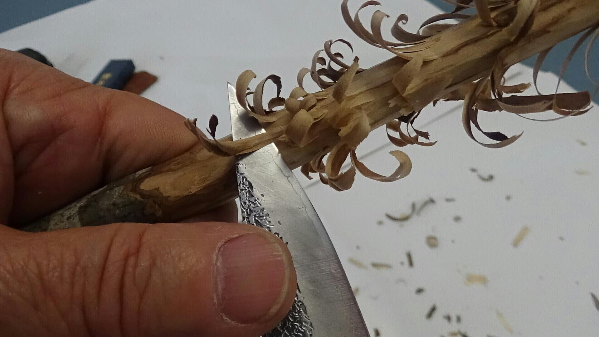 初めてのフェザースティックできました。薄刃だと綺麗に削れます、通常のナイフとの差を感じました。たった1ミリの差(?)、されど、切ったら実感!!薄く削れます。