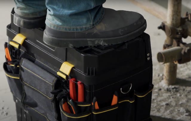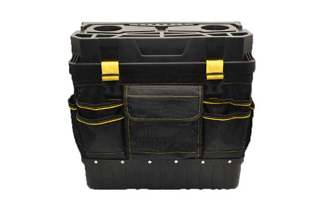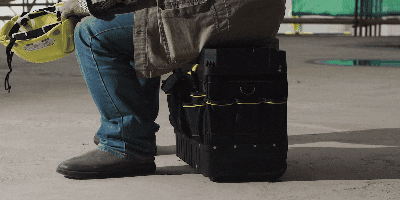 さらに工具箱の上部にモノを重ねて置くことOK!また、ボックスを上に重ねたときに安定するように付属のショルダーベルでも固定できるようになっており、一度の移動で複数の工具箱を一緒に運ぶことができます。