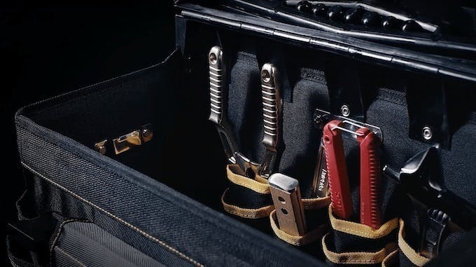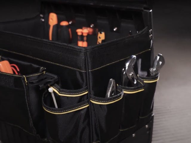 長年にわたりプロに選ばれている圧倒的な使いやすさと耐久力。その技術を存分に活用したのが、この「スーツケース型移動式工具箱」Rolling Tool Bag(ローリングツールバッグ)です!