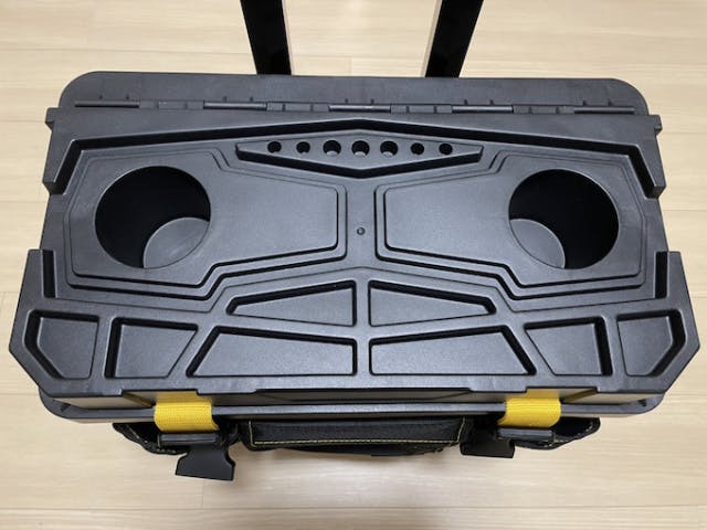 工具箱の上蓋です。ドリンクスペースや飲み物を置くこともできます。