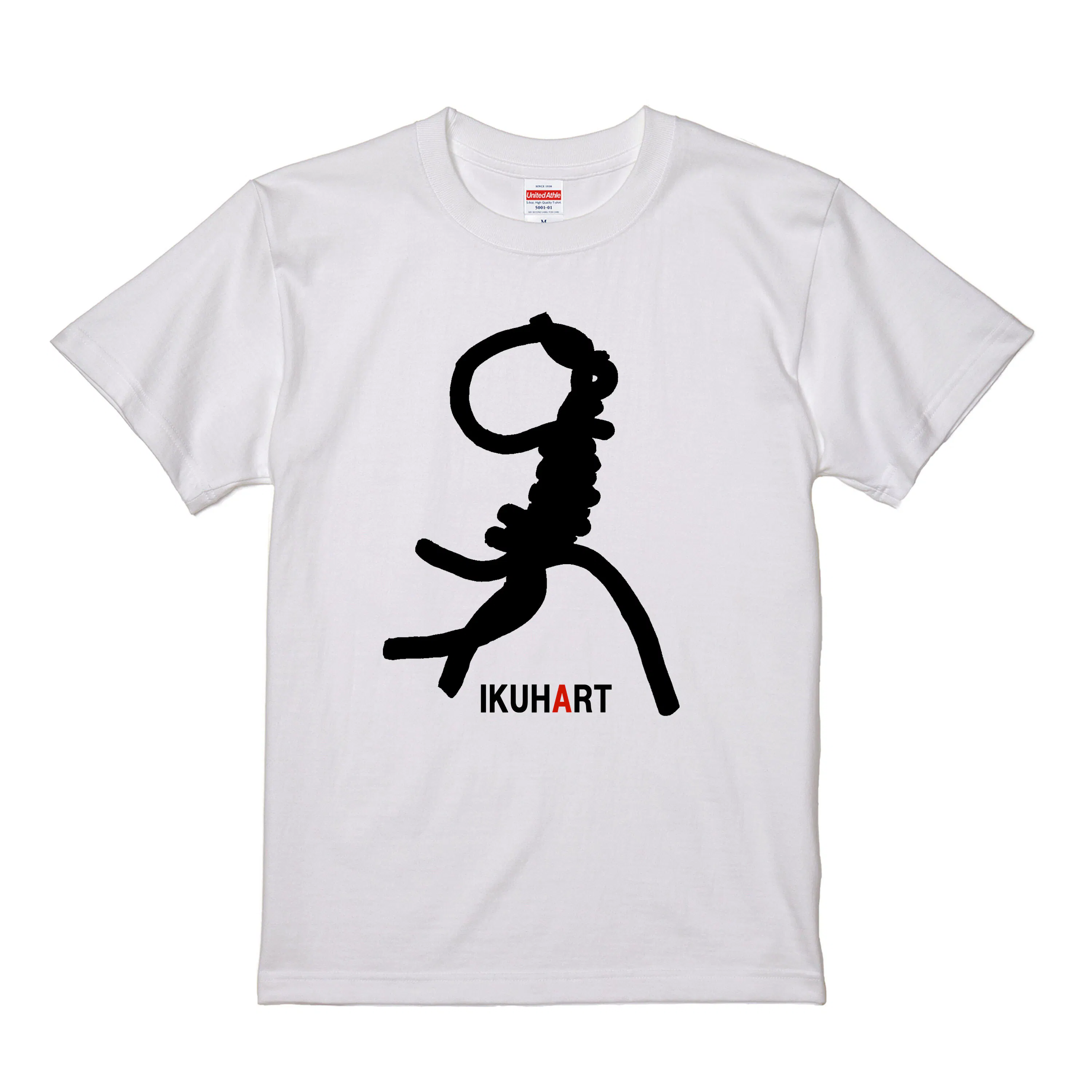 着回しのきくシンプルな白地に、鉄の彫刻家JUN TAMBAの力強い作品の稜線が浮かびます。5.6オンスの丈夫な厚手生地、普段使いにワークウェアにどうぞ。デザイン1種類・サイズ4種類。