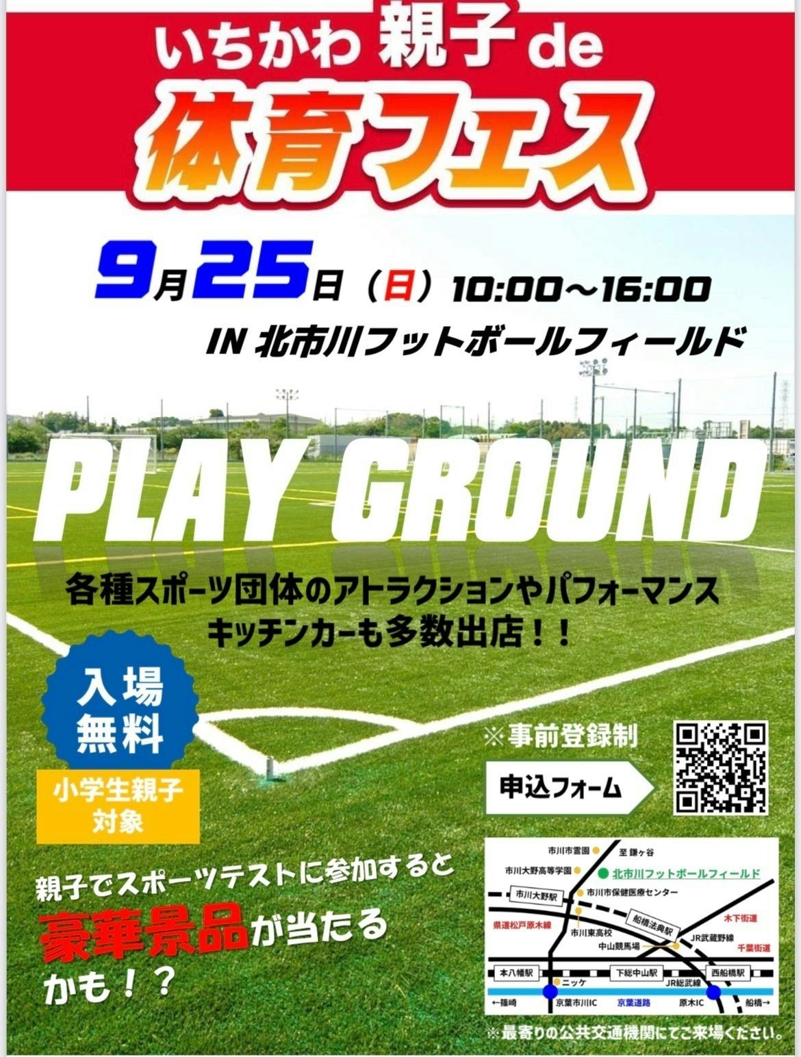 市川市には市川サッカークラブとブルーサンダース(アメフトチーム)というスポーツチームが存在します。市川サッカークラブはJリーグ加盟を、ブルーサンダースはさらに上のカテゴリを目指し日々練習を重ねています。今回の「いちかわ親子de体育フェス」ではこの2チームを中心に普段あまり触れることのできないスポーツを体験できるブースを多数用意しています。コロナ禍により子どもだけでなく大人も外で運動する機会が減少しています。今回のイベントにより体を動かす楽しさを親子で体験し、スポーツを始めるきっかけとなれば幸いと考えています。