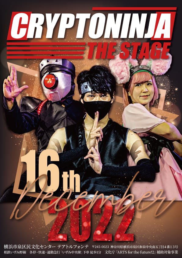 例えば、舞台『CryptoNinja(クリプトニンジャ)』では従来のチケットの代用として一部をNFTをチケットにします。