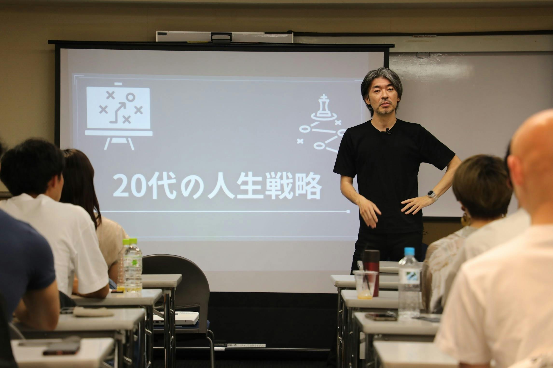 ↑(2022年 長倉が、月に1回開催している『20代の人生戦略』について語るセミナー。)