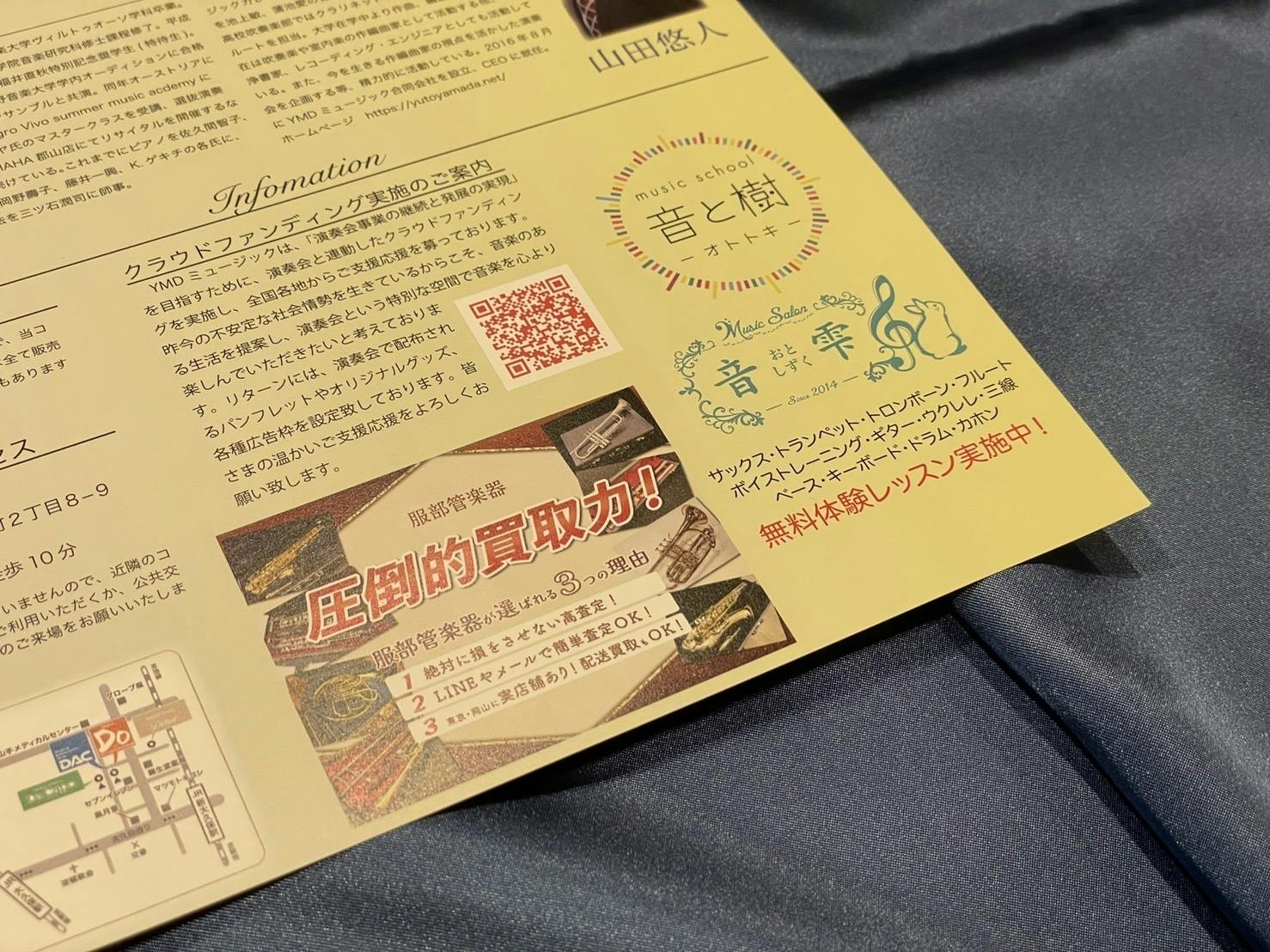 演奏会は人が注目し、人が集まる機会と言えます。演奏会チラシ、パンフレットに広告枠を提供し、広告宣伝の場としてご活用いただけます。また、クラウドファンディングを通じて、弊社作品カタログの広告枠提供を実施しています。