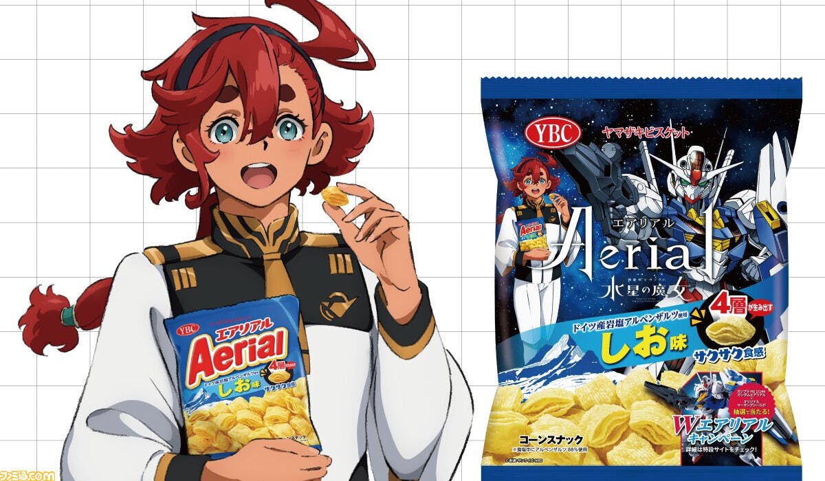 本日10月16日(日)に第3話が放送されたテレビアニメ『機動戦士ガンダム 水星の魔女』と、ヤマザキビスケットのお菓子“エアリアル”とのコラボパッケージが発売されることが明らかとなった。