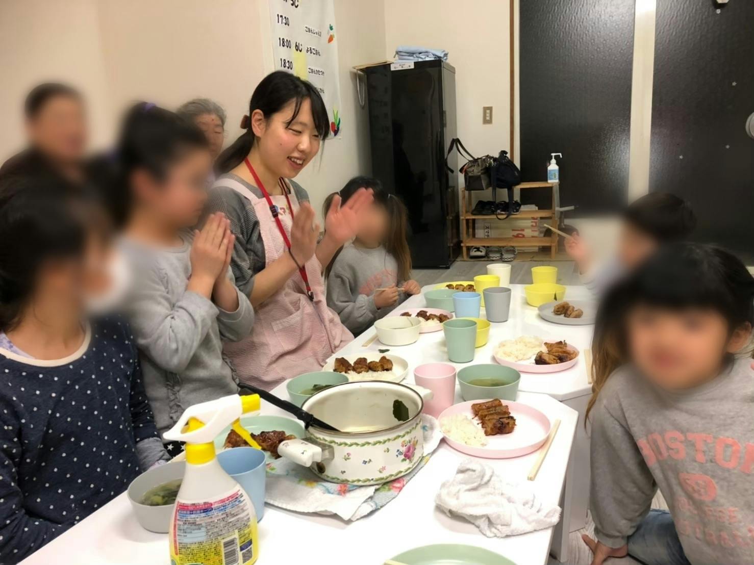 隣の子ども食堂で、みんなで食事の準備をして食事をします。