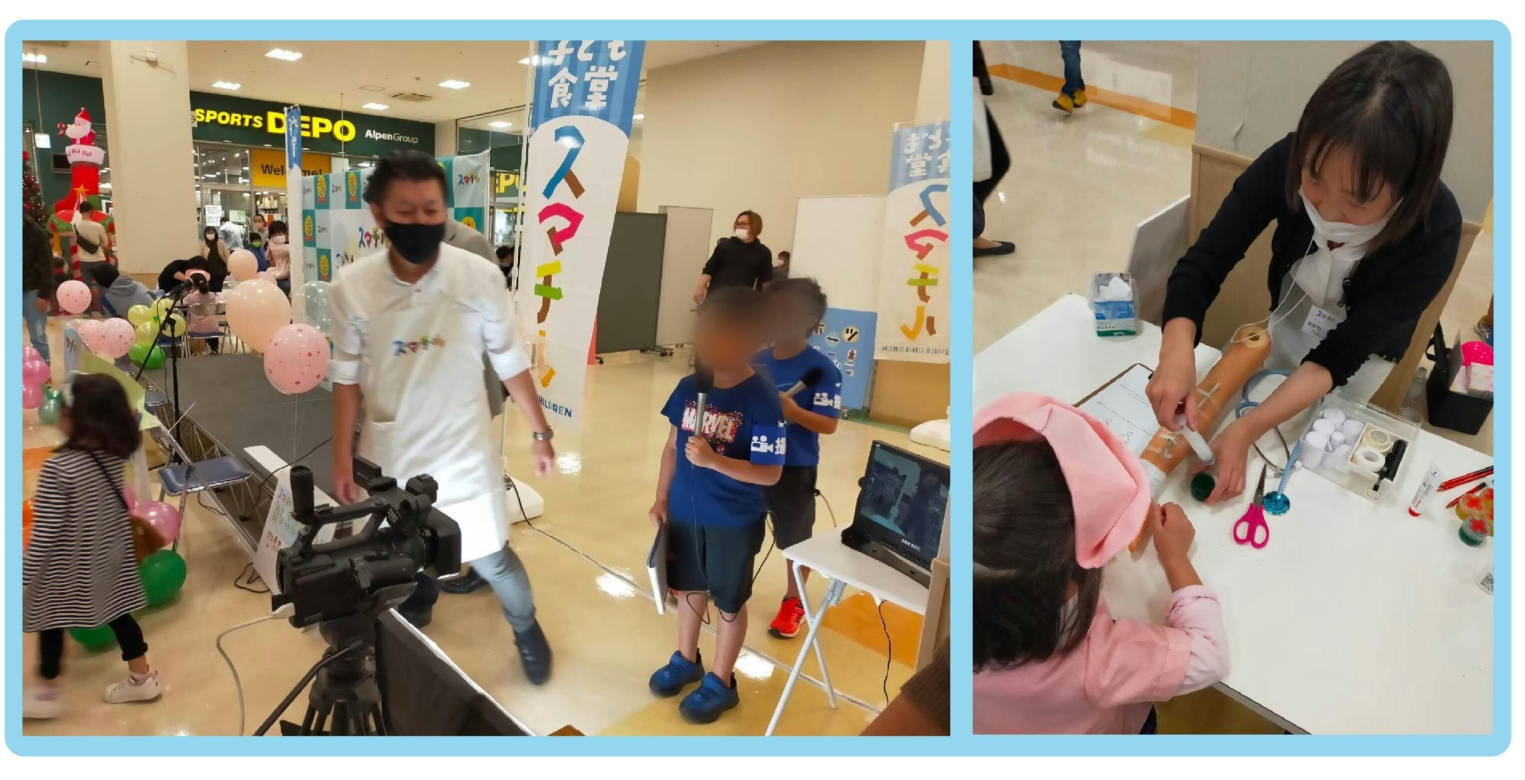小田原市の「フレスポ 小田原シティモール」にて、医者・看護師、TVディレクターなどさまざまな職業のゲストを呼んで、小学生対象のお仕事体験イベントを開催しました。予約制で、各回約100人の参加者とその家族にご来場いただきました。