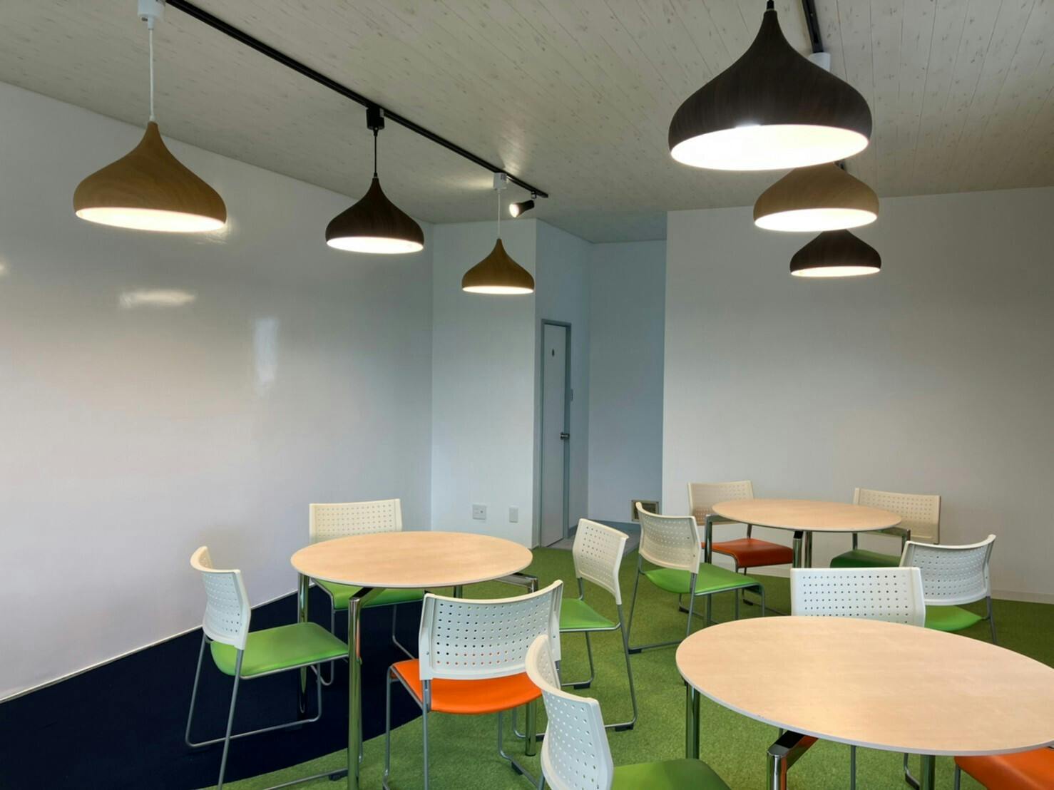 ★リラックス効果がある緑の人口芝風のカーペットで落ち着いて勉強できます。