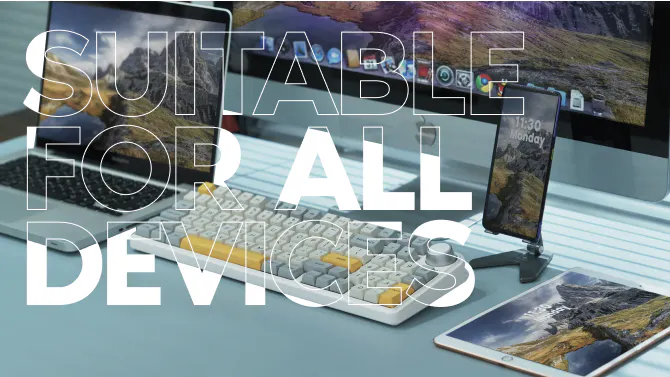 業務に追われていると感じていませんか?Epomaker Th96を相棒にしてください。Bluetooth 5.0と2.4Gワイヤレス受信器で最大3台のデバイスを同時に接続できるので、デスクトップ、ノートパソコン、タブレット、スマホでシームレスにマルチタスクをこなすことができます。
