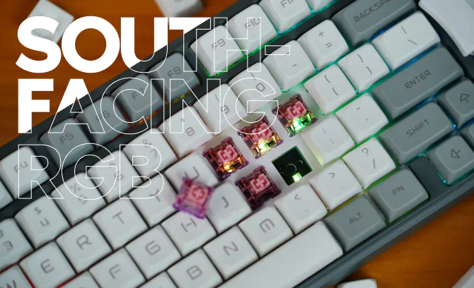 RGBライトは誰でも好きですが、ほとんど見えなければ意味がありません。TH96は、南向きRGBを採用し、タイピングする人の目線に合わせてキーボードのバックライトをより明るく照らすように設計されています。また、南向きのRGBは、ユーザーがキーボードにチェリープロファイルの代替キーキャップを取り付けた場合にも干渉することはありません。