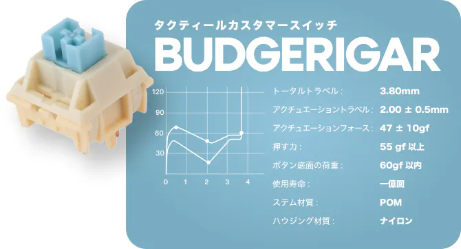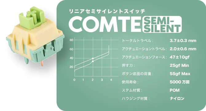 何時間でも満足のいくキーボード操作と、カチカチという音を聞きたいという方は、ぜひこの感触のいい機械式スイッチを試してみてください。1億回のキーストロークと47gの初期荷重で、優れた押し心地が得られます。
