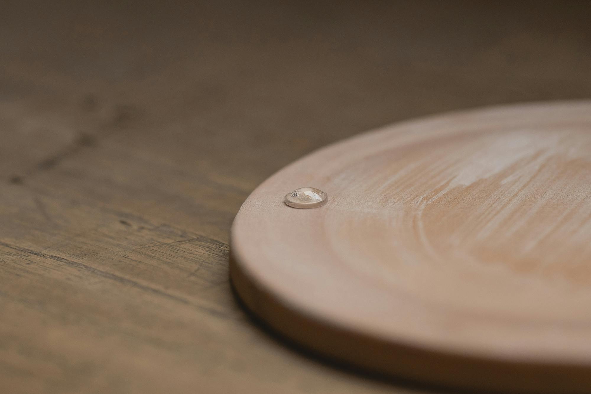 竈門付きのリターンに付属する鍋敷きには、陶器の焼き上げ時に使用する底板を採用。
