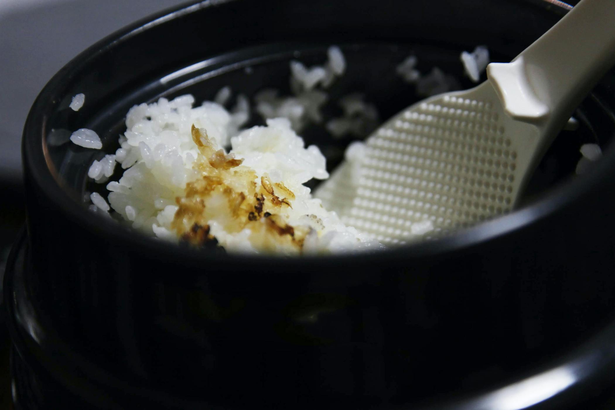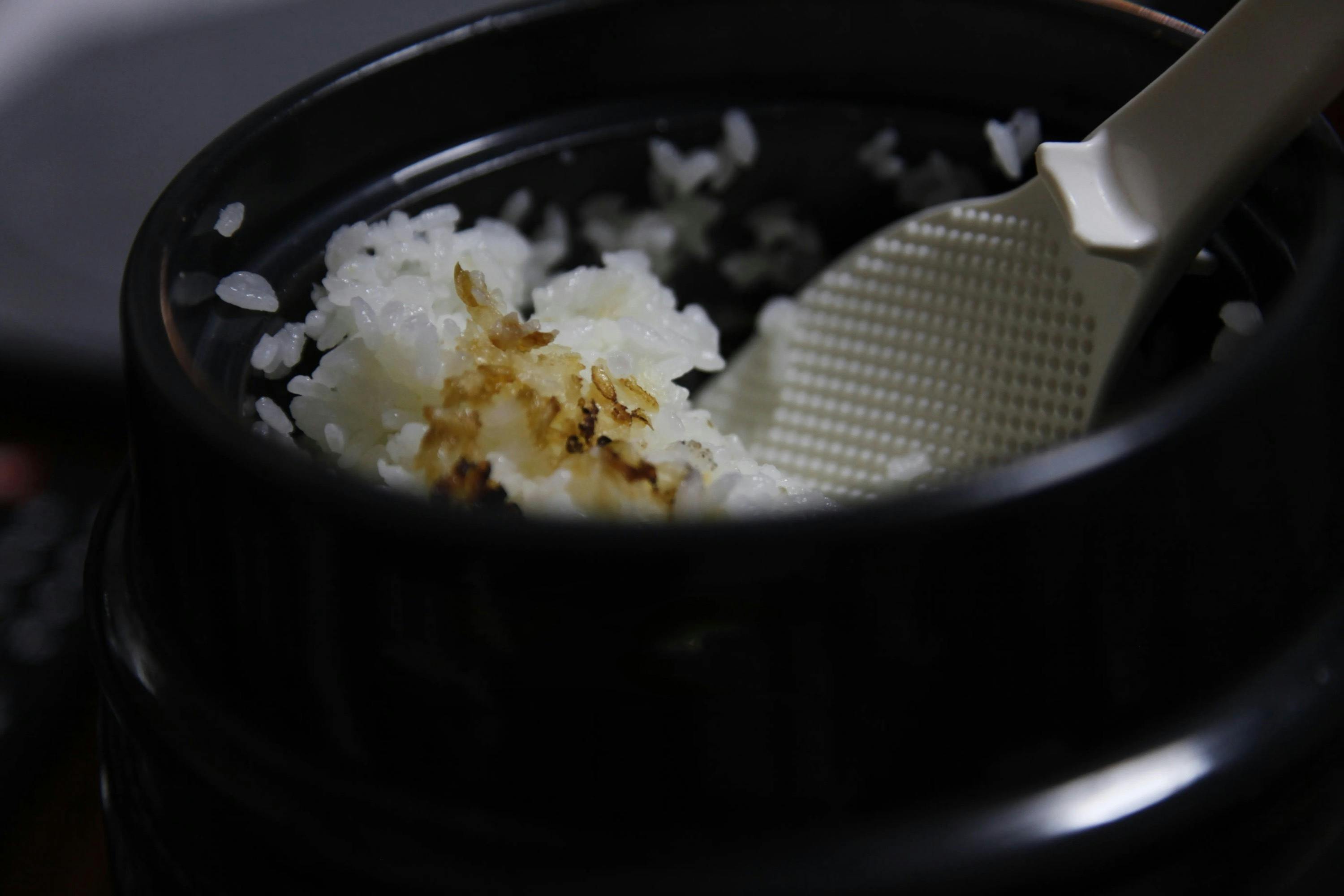 おかま土鍋についた「おこげ」の取り方・焦げ付いたおかま土鍋に水をいっぱい入れ、30分~1時間放置してから、洗うことで取れやすくなります。