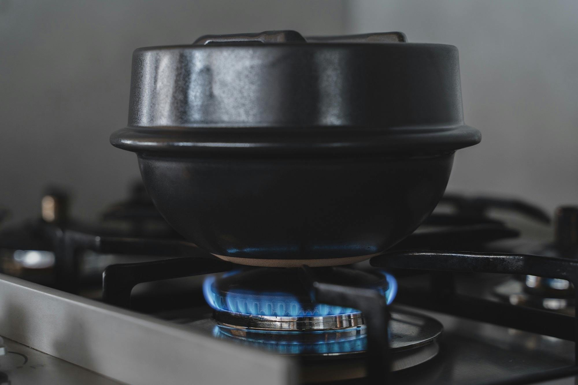 ご家庭のガスコンロやカセットコンロでも使用可能。 ガスコンロでお米を炊くときは弱火で約16〜20分で炊飯が完了します。