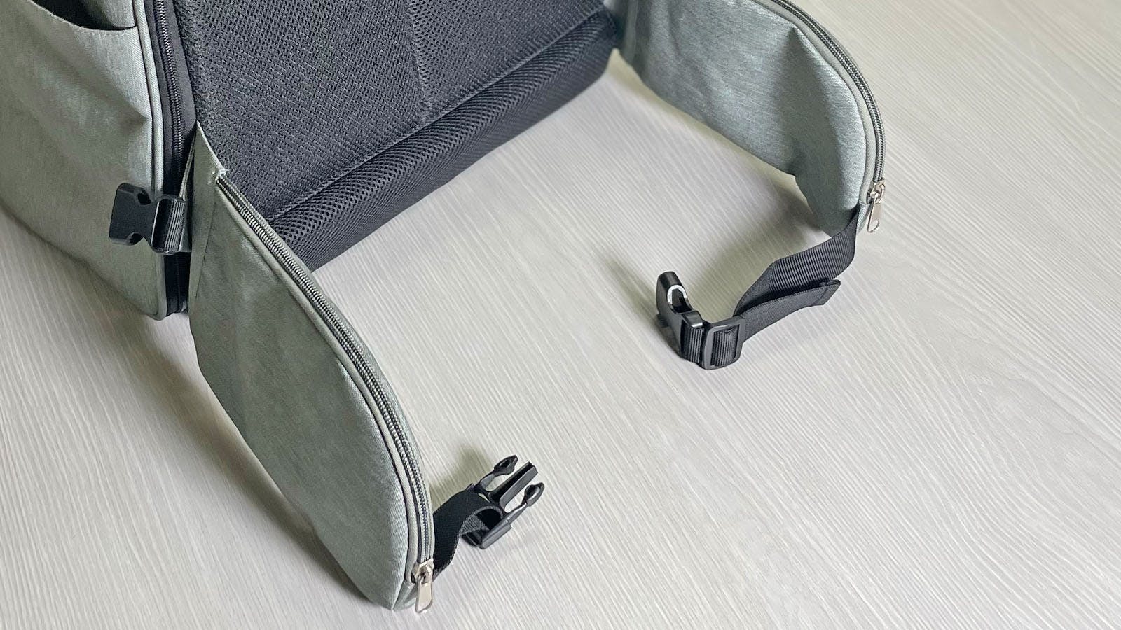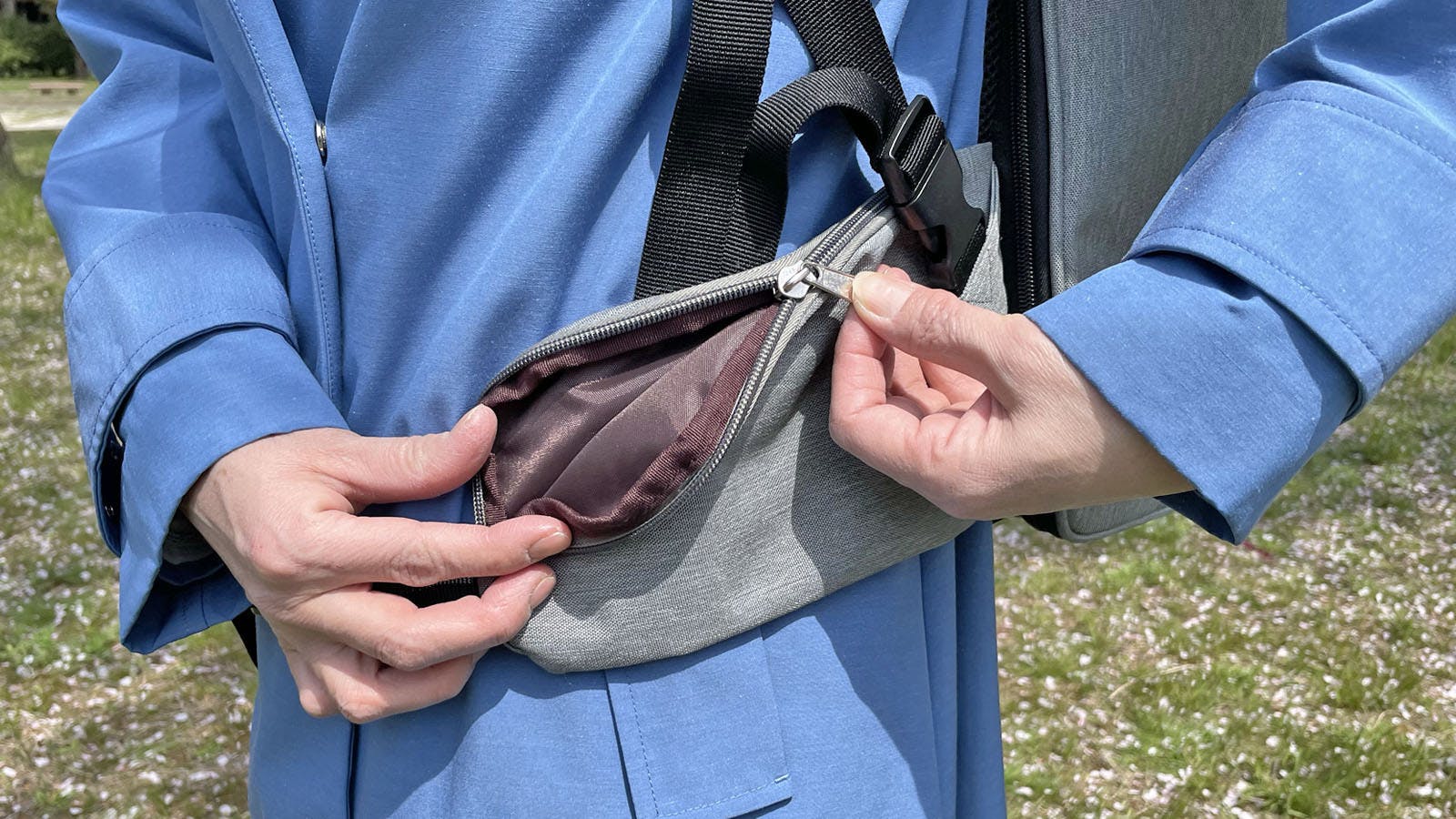 下ろす時にリュックを下に置いてベルトを簡単に外すことができます。