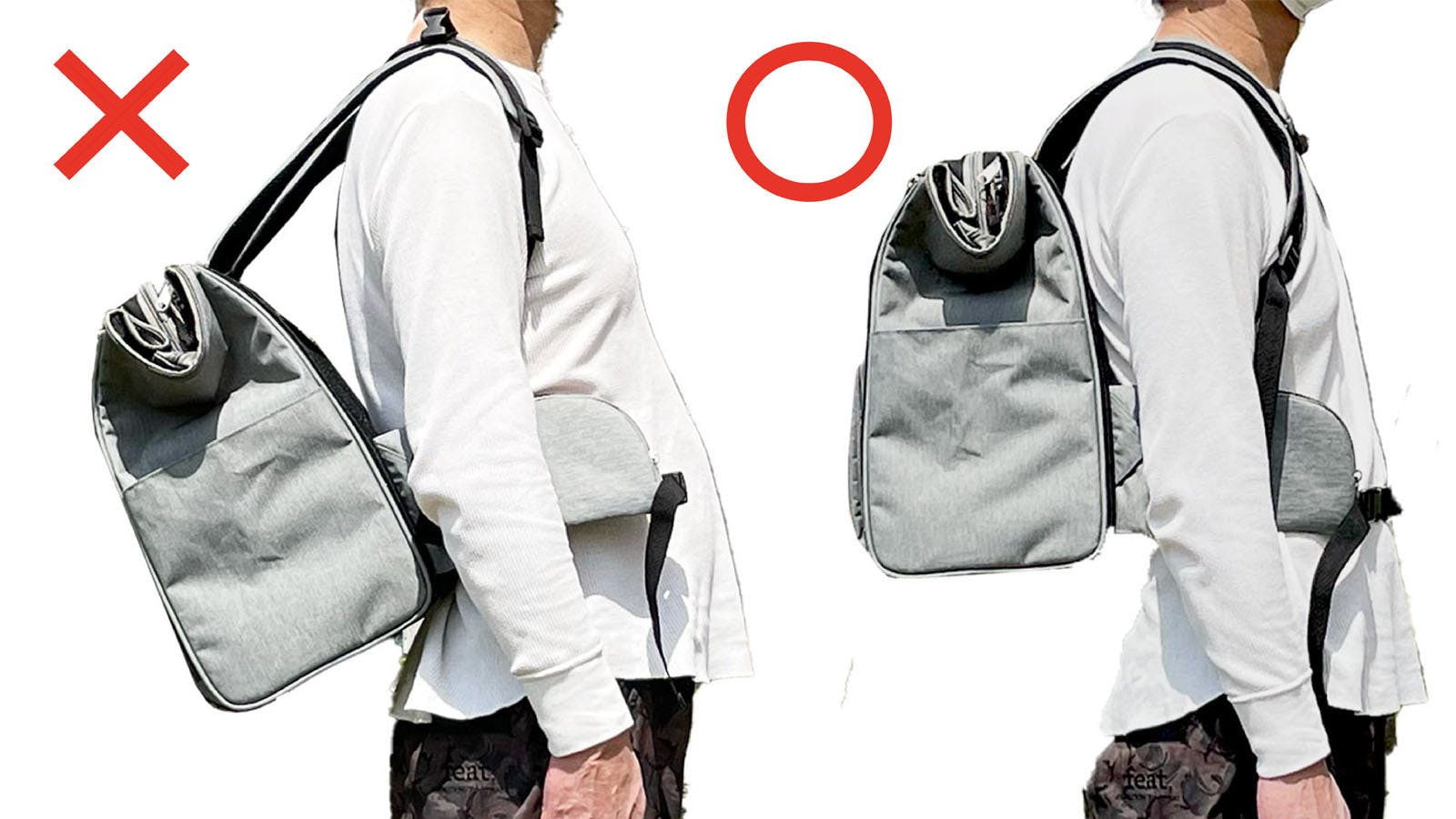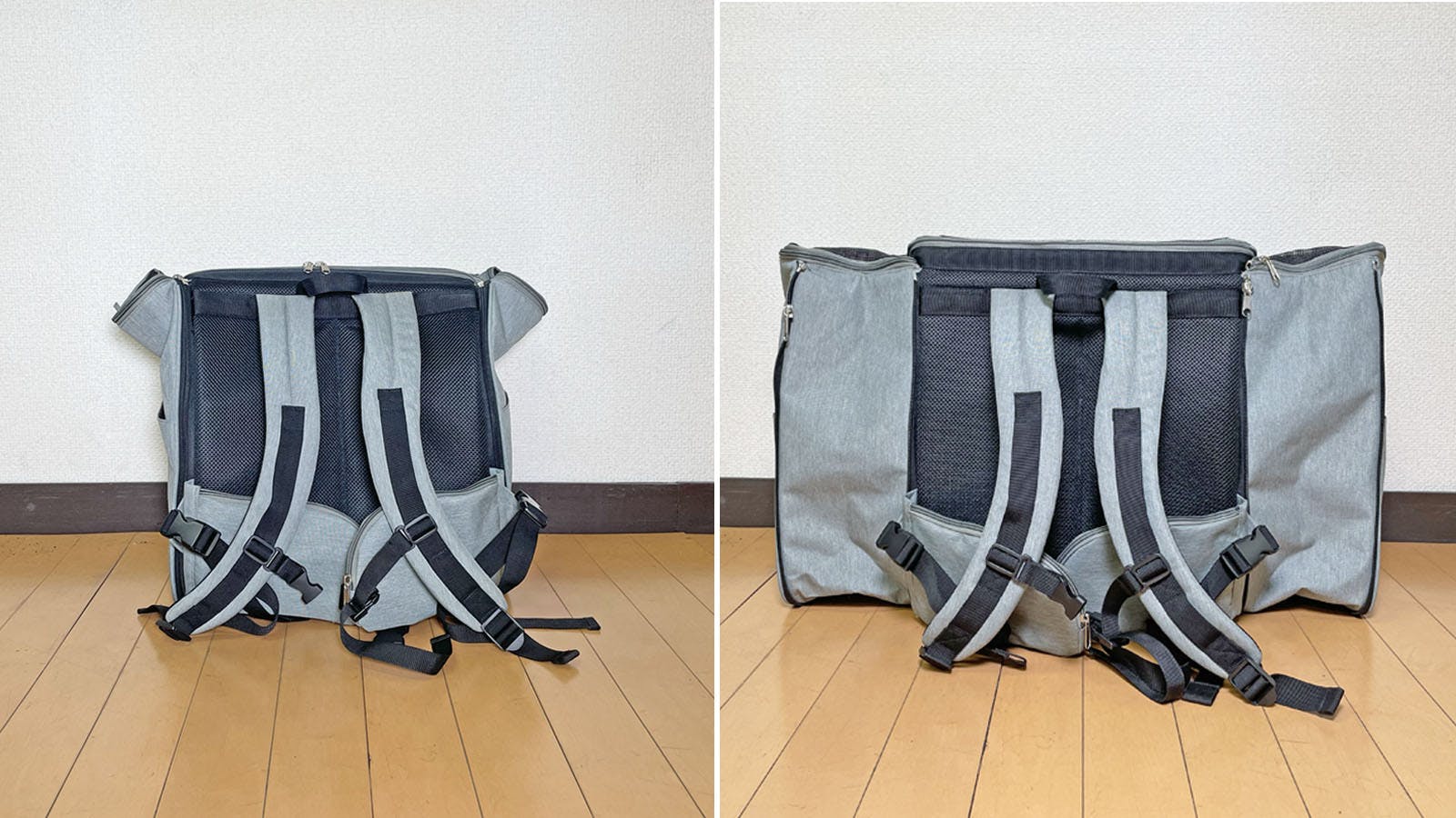 A:バランスが崩れるのでケージの時にはリュックとして使わないでください。