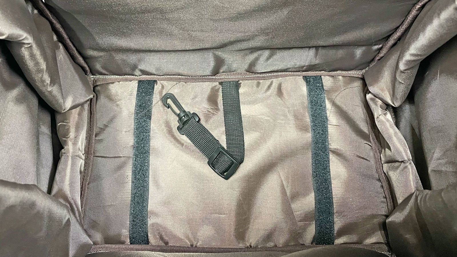 ウエストベルトと腰クッション。ワンちゃんが背負われている時に動いてもグラグラしにくく重さも分散させ安定します。