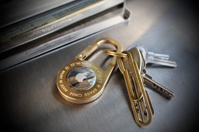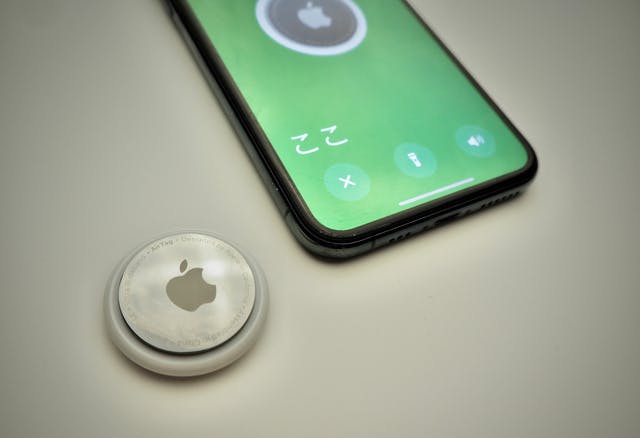 まず、500円玉程度の大きさのAirTagを大切なものに入れたりつけたりします。
