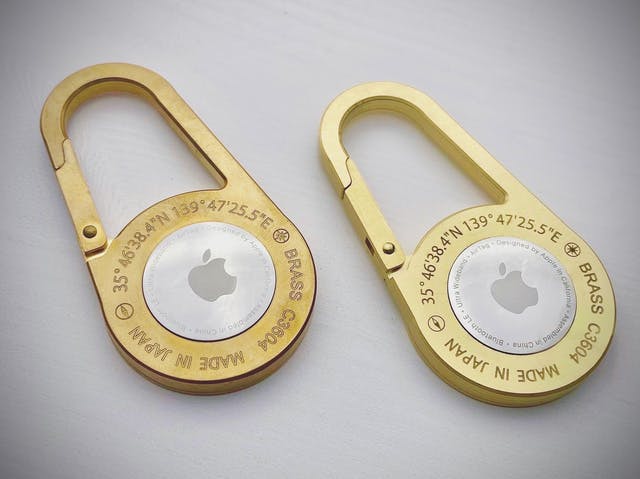 3種類の金属の塊から削り出して製作した、Apple社のAirTag専用ケースです。
