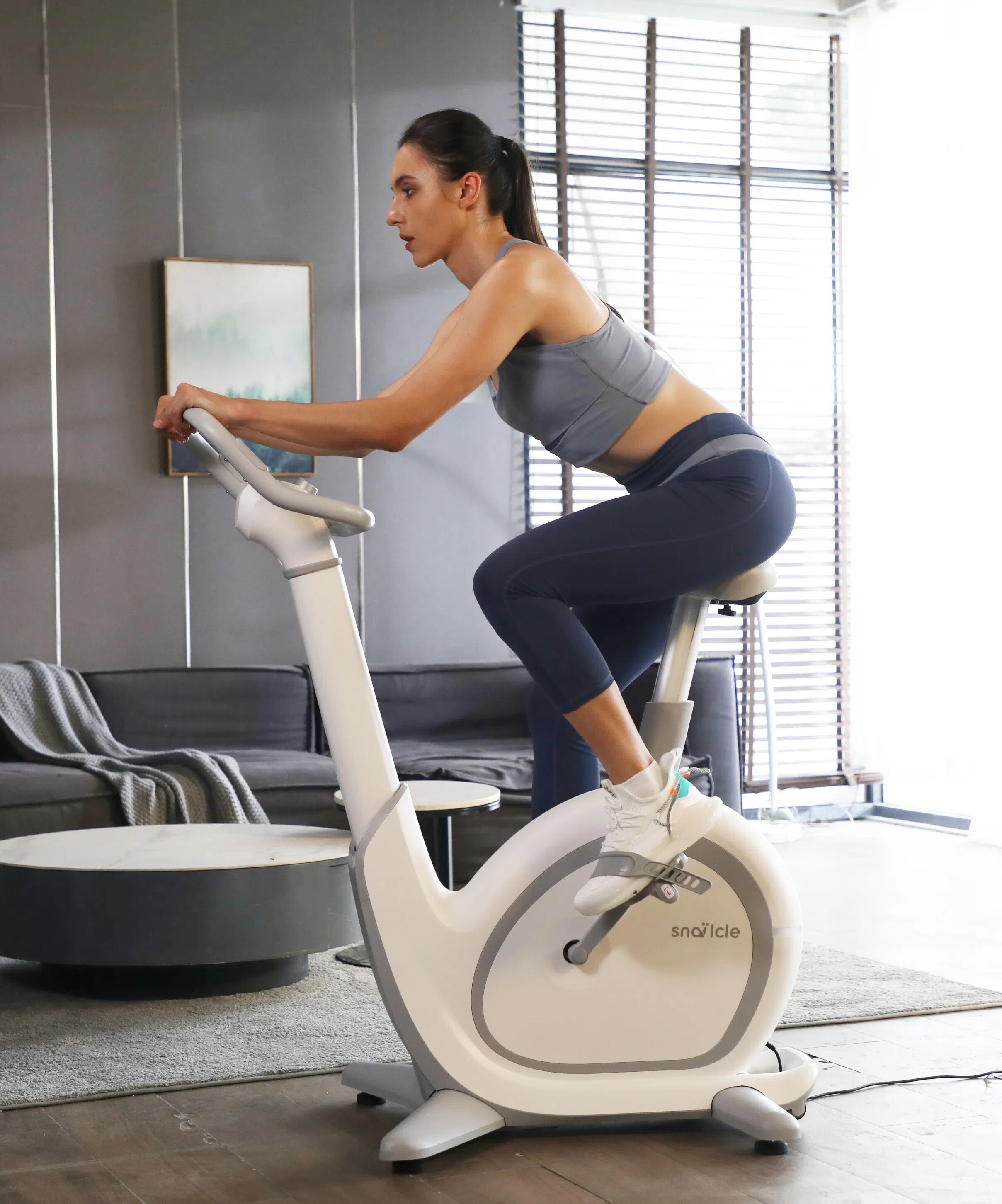 【Snailcle bike】は省スペースで本物のバイクのようなライディング感覚で有酸素運動のエクササイズが行える、AIフィットネスバイクです。