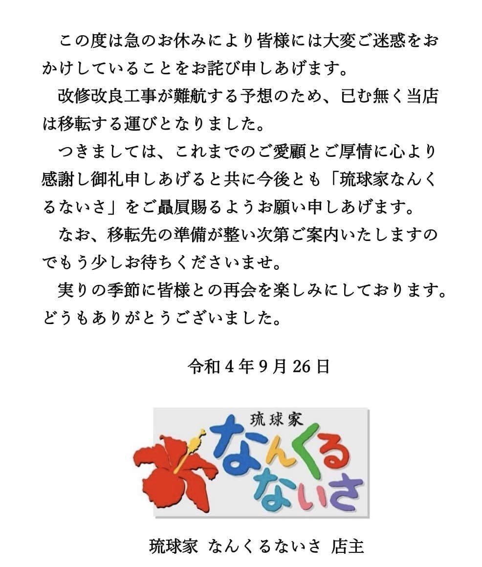 東京JR新橋駅ガード下で長年、多くのお客様に支えられて営業を続けてきた沖縄料理店「なんくるないさ」でしたが2年以上に渡るコロナの影響や店舗の老朽化に伴い突然閉店を余儀なくされてしまいました。