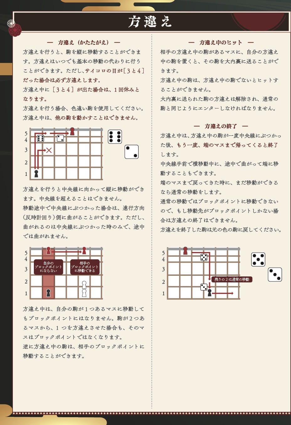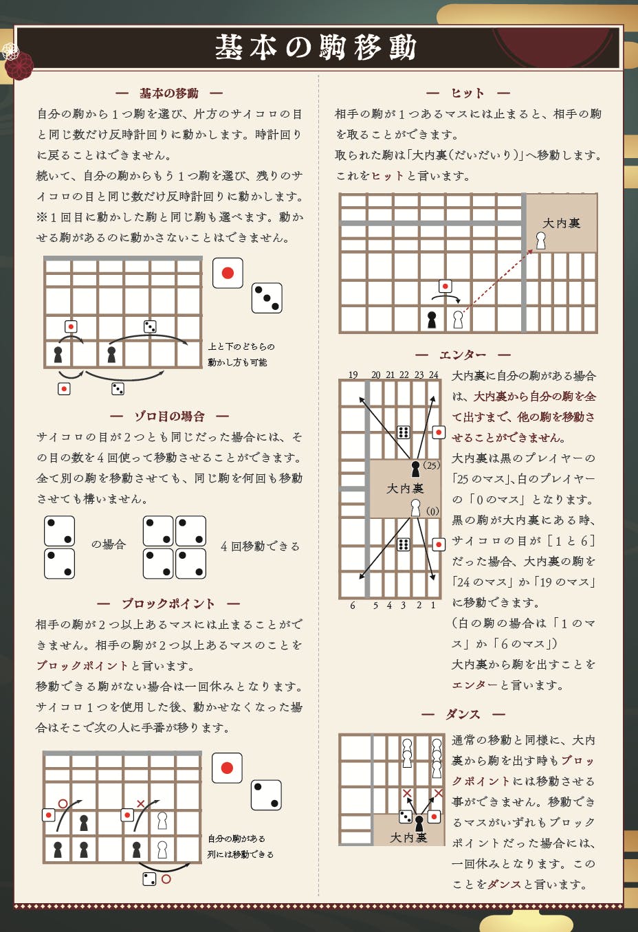 平安京バックギャモンには通常のバックギャモンにはない特殊ルールがいくつかあります。