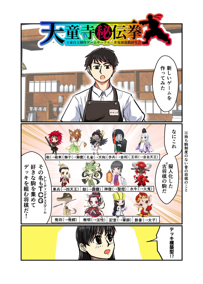 実際にオリジナルゲームで遊んでみたいという読者さんの声や、主人公たちが考えたゲームを1つでも多く現実のものにしたいと思い、作中と同じ名前のサークル【天童寺秘伝拳(天童自主製作ゲームサークル・非電源遊戯研究会)】を立ち上げました。