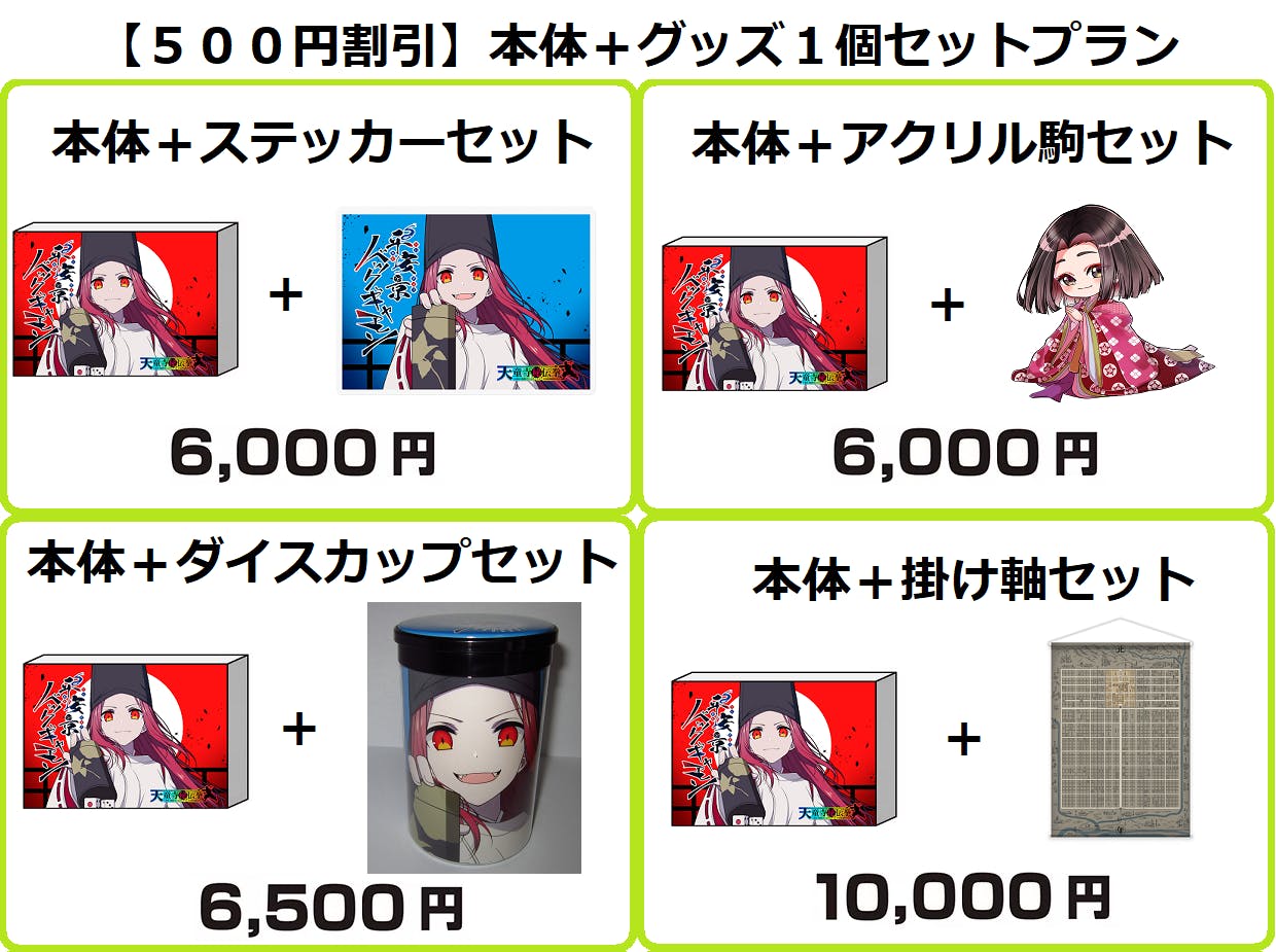 ゲーム本体+アクリル駒+ステッカー+ダイスカップセット(7,500)