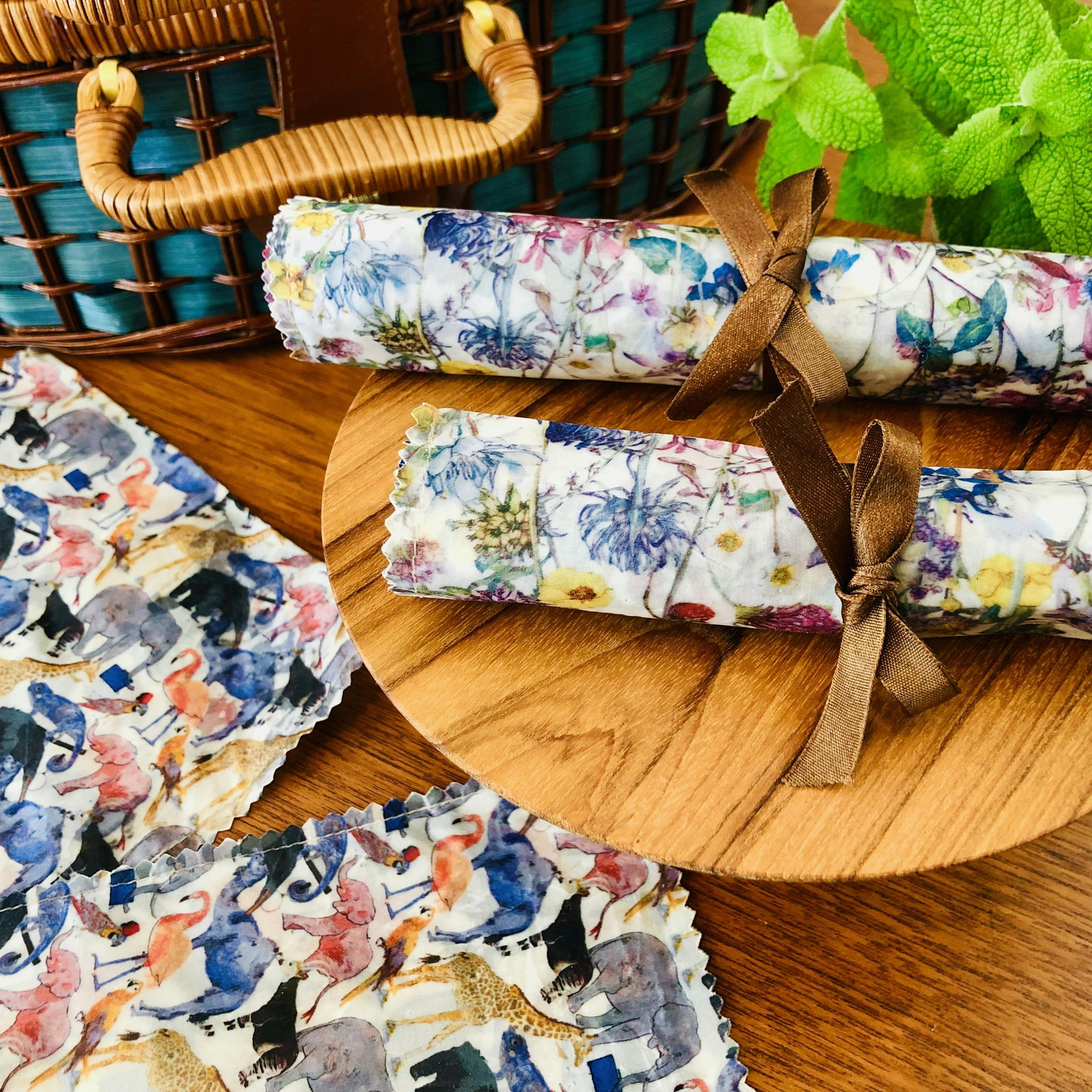 上質な綿を使用したコットン生地(タナローン)に、独自配合したミツロウとココナッツオイルのコーティングを施し、自然素材で作った食品保存用バッグ。自然由来の力で食品の鮮度を保ち、手洗いすれば繰り返し使うことができます。3種類のサイズ各1枚をセットにしました。