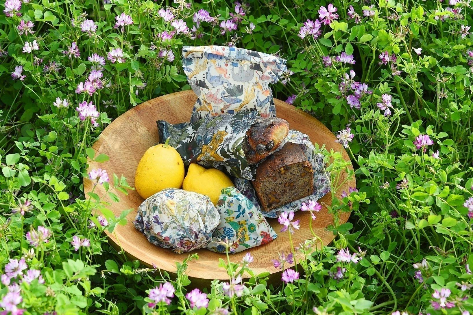 上質な綿を使用したコットン生地(タナローン)に、独自配合したミツロウとココナッツオイルのコーティングを施し、自然素材で作った食品保存用バッグ。自然由来の力で食品の鮮度を保ち、手洗いすれば繰り返し使うことができます。