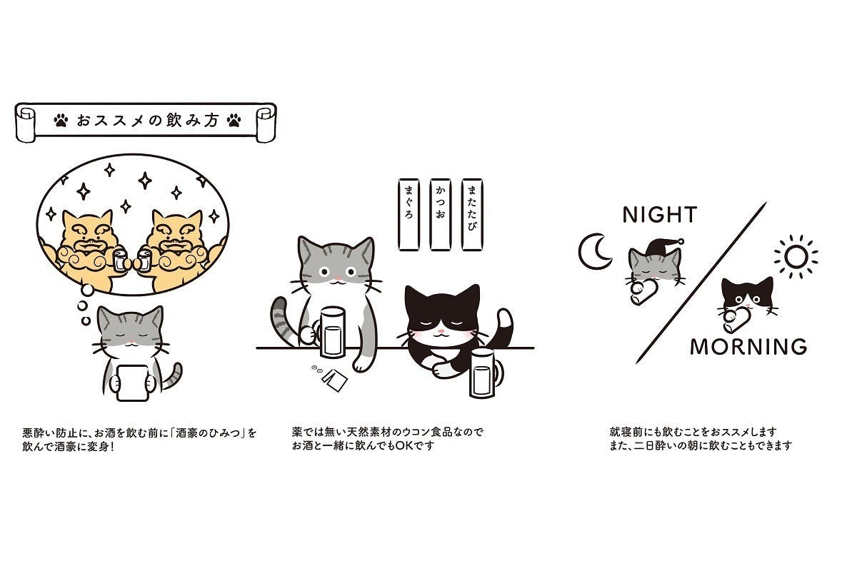 本当は「美肌のひみつ」とか「若さのひみつ」のようなものでも良かったのですが、取組みのきっかけがお酒を飲む機会が増えたという声を多く聞いたことからでしたので、沖縄長生薬草本社様の他商品のリスペクトも込めて「酒豪」を採用しました。