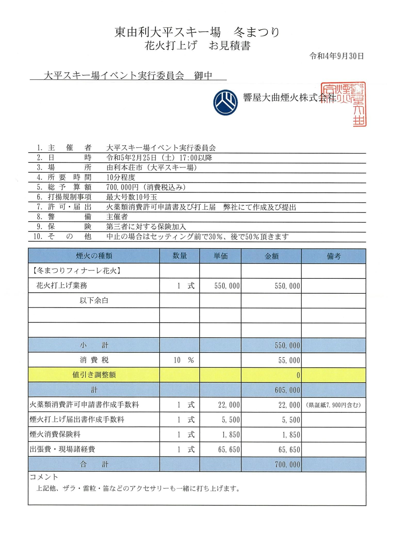 現在、冬花火を打ち上げるイベントは市内外でも珍しくいいPRになると思うので成功させたいです!