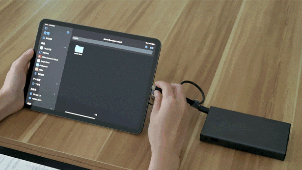 Lightning ポート、USB-Cポート(2018年iPad Proに適用)またはアダプタを使用して、HAGIBISドッキングステーションとiPadを接続します。