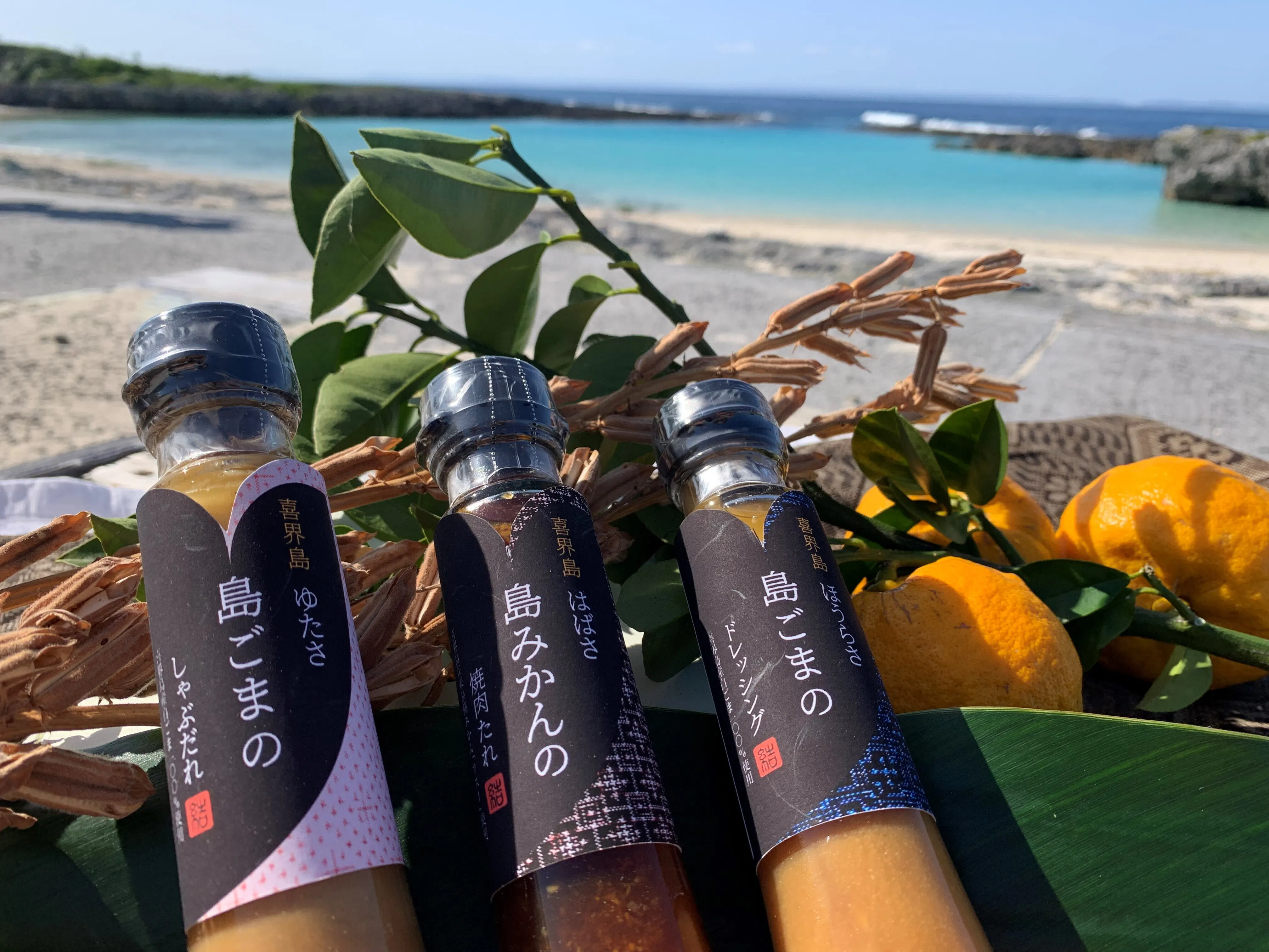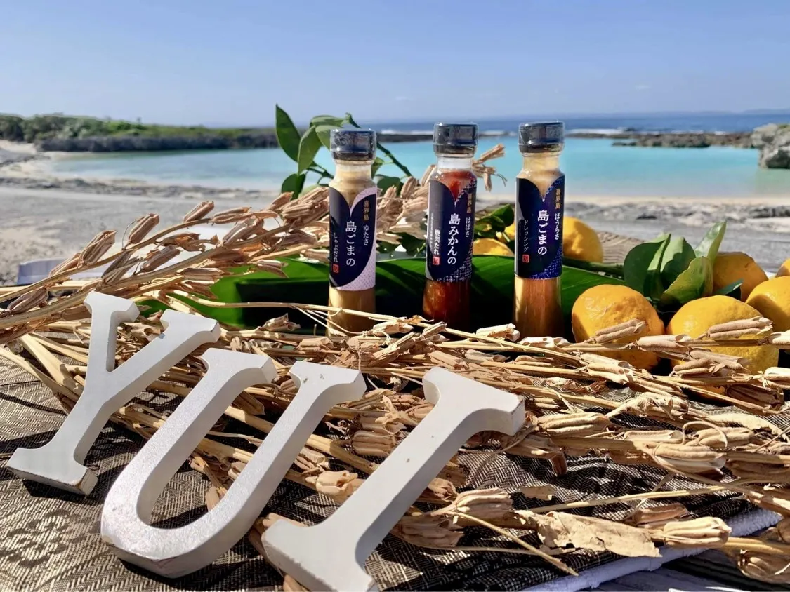 デザインに込められた想い、背景にある喜界島の歴史など、伝えたい物語を『ゆたさ島ごまのしゃぶだれ』『ほうらさ島ごまのドレッシング』『はばさ島みかんの焼肉たれ』の3本セットに添えてお届けします。