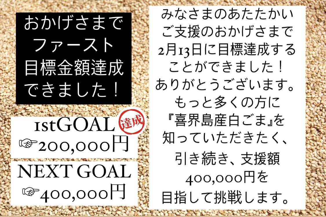 喜界島で太陽を浴び、ミネラルたっぷり、希少な香り高い『喜界島産白ごま』をぜひ楽しんでいただければと思います。
