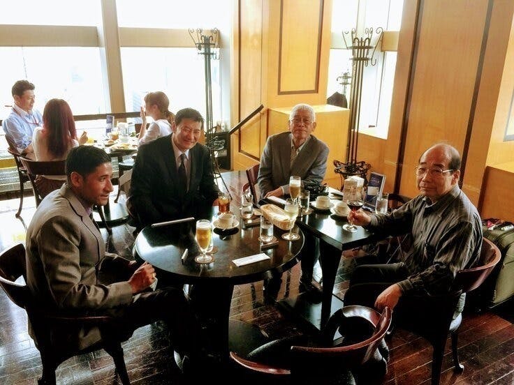 - 2022年度1回理事会 左現地責任者Mr Nabin、 右理事長、ほか理事,