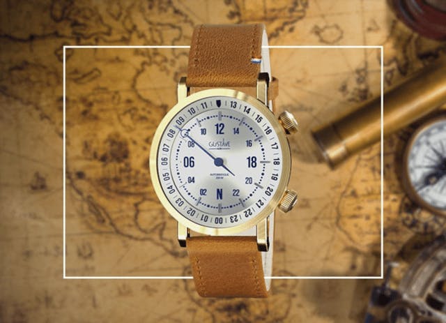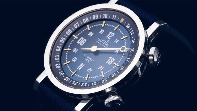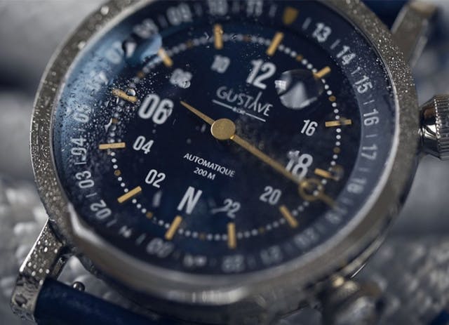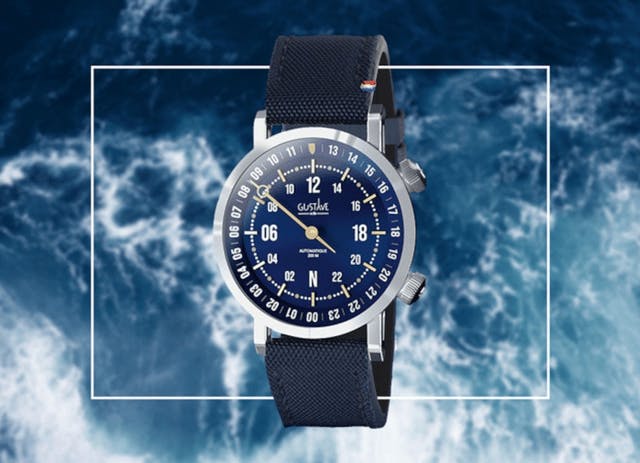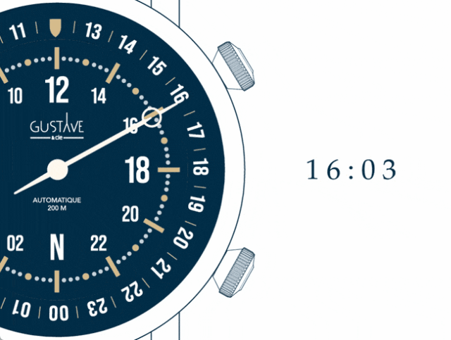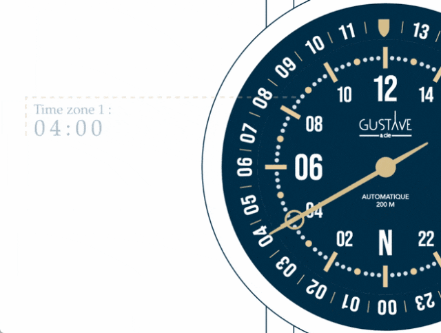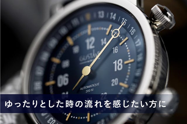 「さあ、海への冒険の旅に出よう」、GUSTAVE&cieでは、ワンハンドの針で落ち着いて時刻を確認できます。