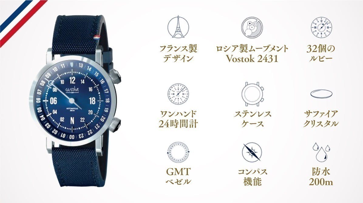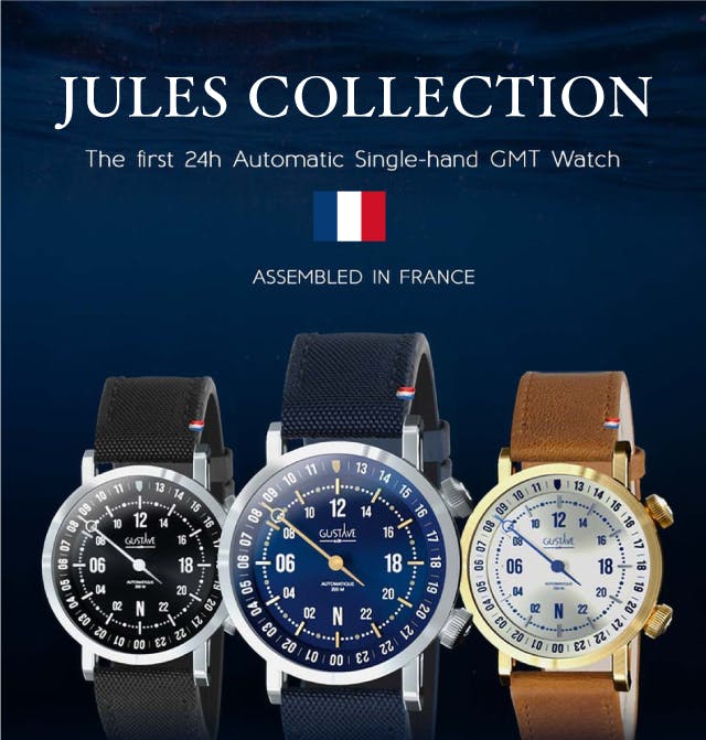 クォーツ式のワンハンドウォッチの4シリーズのコレクション完成後、Gustave&Cieとしては最初のオートマチック24時間時計である“ジュールコレクション”に取り組む決心をしました。